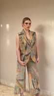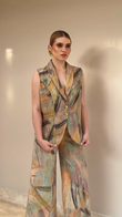 Abstract Print Sleeveless Blazer & Wide - Leg Pants Set