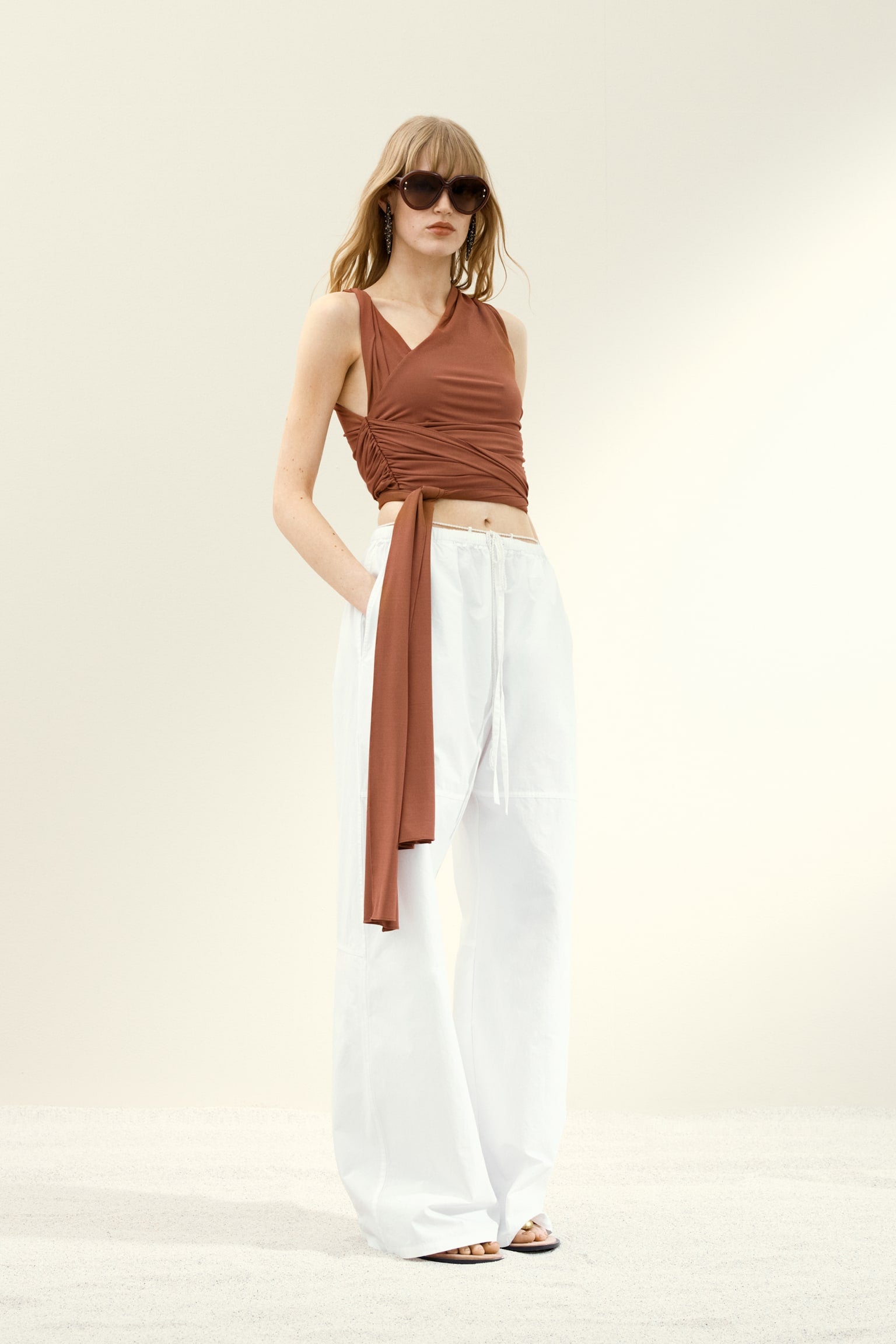 Asymmetric Wrap - Top and Wide - Leg Pants Set