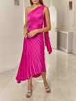 Classic pleats, modern twist: The incorporation of pleats adds a timeless touch to the dress, while the asymmetry brings a contemporary edge. This fusion of classic and modern design elements makes it a versatile choice for various events.