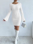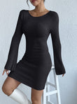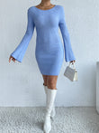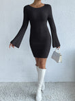 Turn heads with this alluring Backless Solid Knit Sweater Dress. The sleek, open-back design adds a seductive touch to this cozy knit, making it ideal for nights out or special occasions in cooler weather.