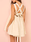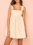 Elevate your style with our Backless Strappy Cream Jacquard Mini Dress. a stunning piece that exudes elegance and sophistication. Here's why this dress deserves a place in your wardrobe:
