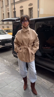 Beige Belted Trench Coat with Cape - like Overlay