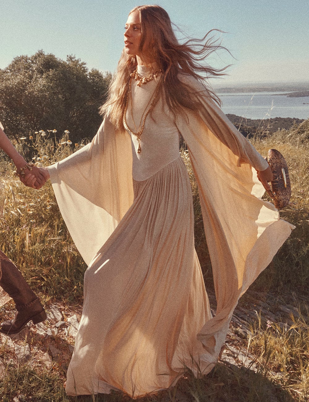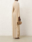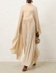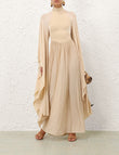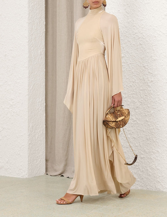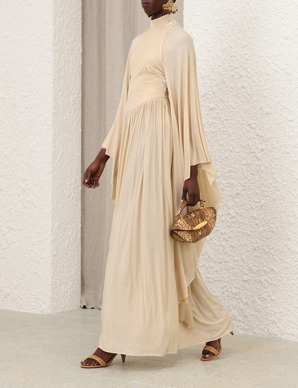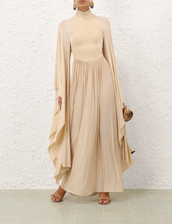 Beige Cape - Sleeve High - Neck Maxi Dress