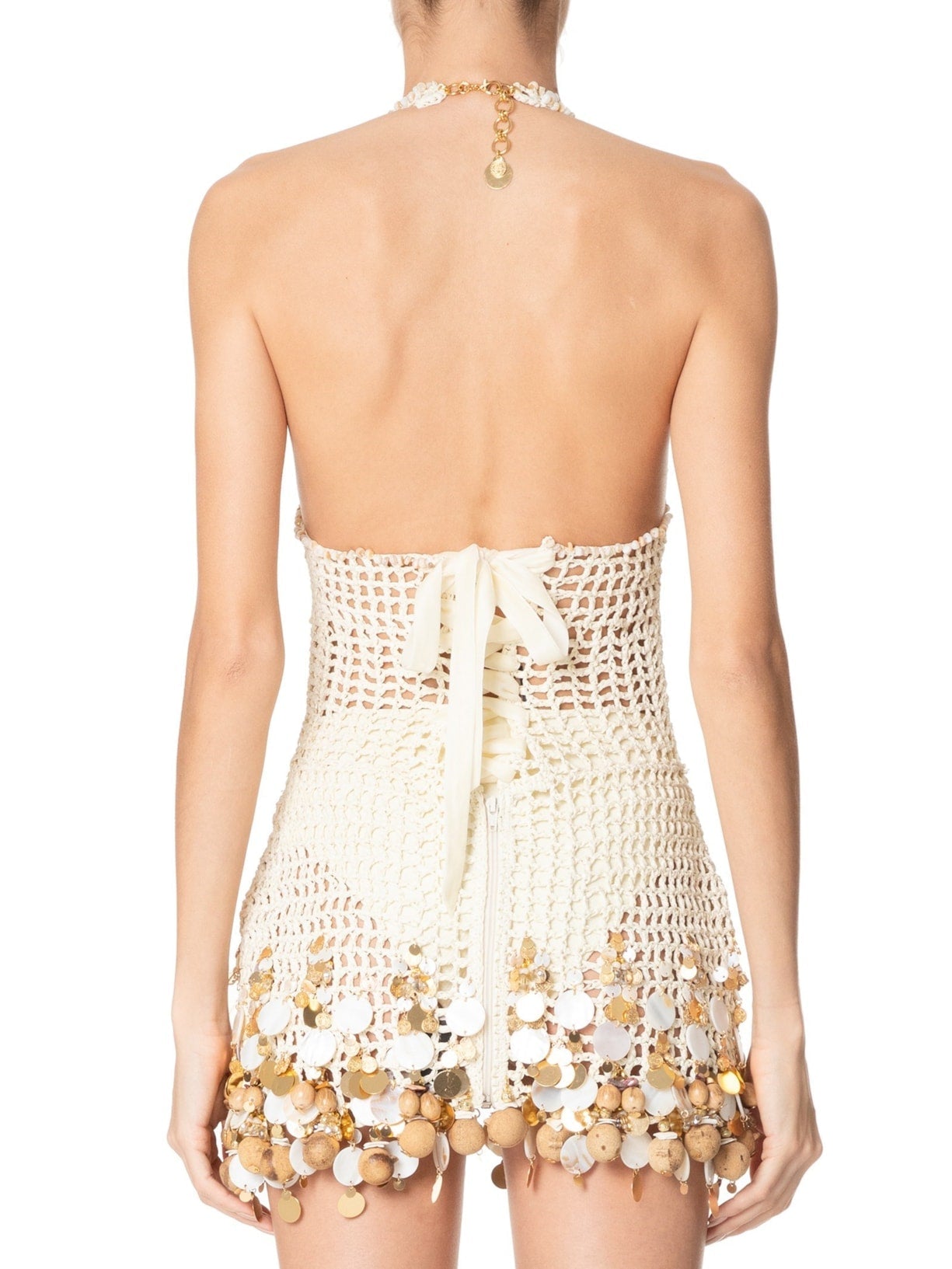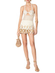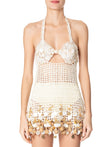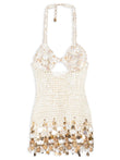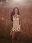 Beige Crochet Halter Neck Mini Dress with Shell Embellishments