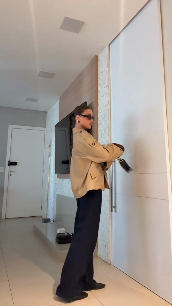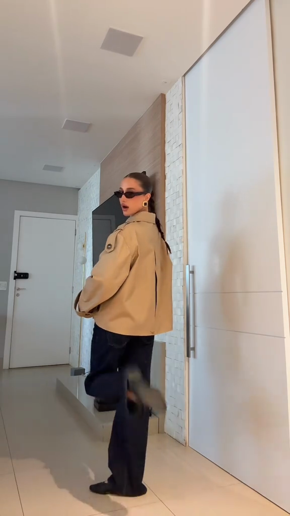 Beige Double - Breasted Trench Jacket
