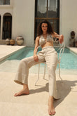 Beige Embellished Camisole and Wide-Leg Pants Set