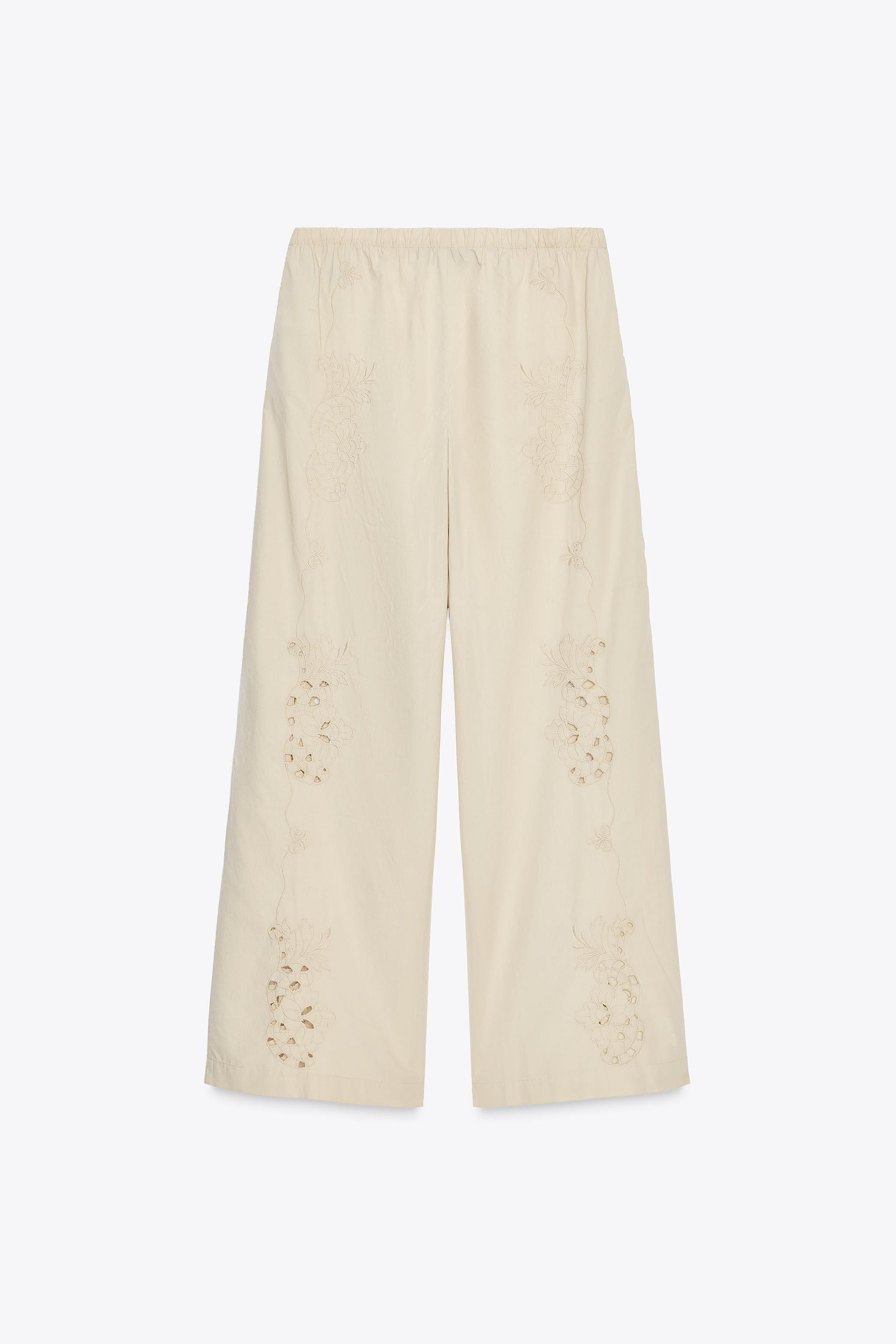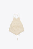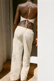 Beige Embroidered Halter Top & Wide - Leg Pants Set