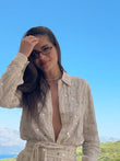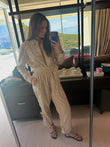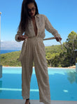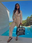 Beige Embroidered Top and Trousers Set