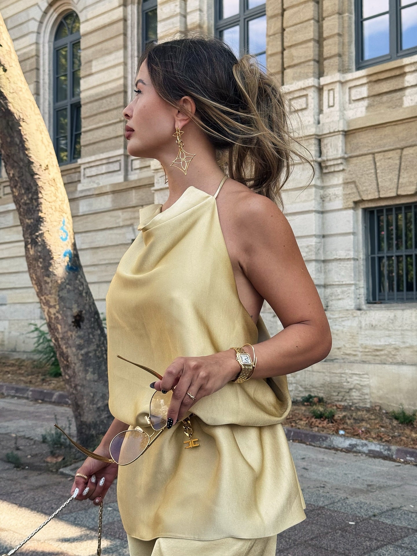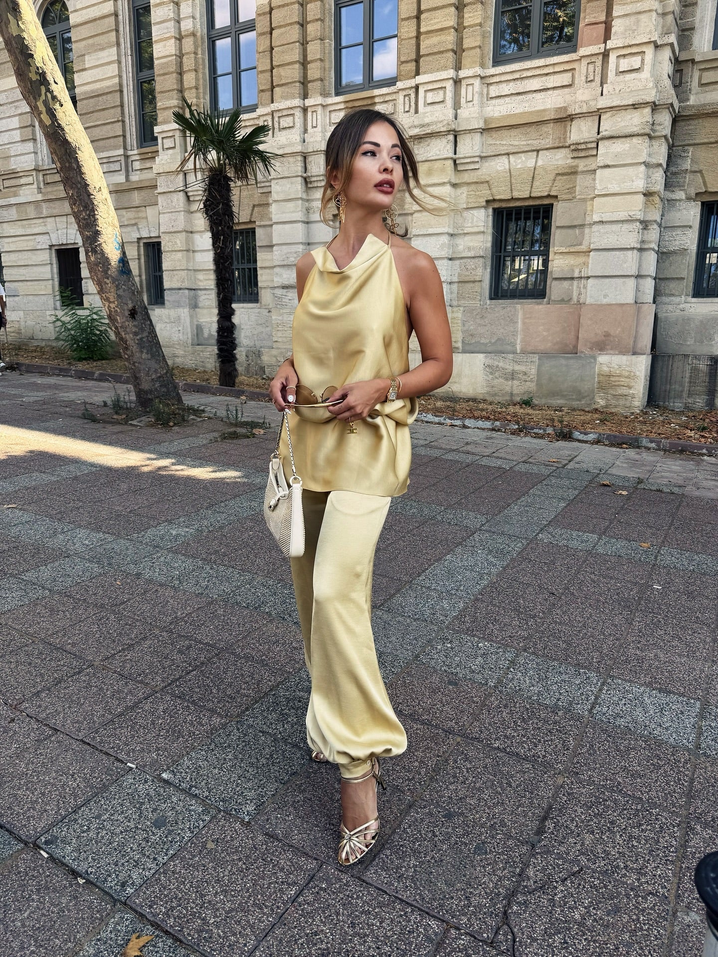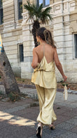 Beige Satin Halter Neck and Lantern Pants Set