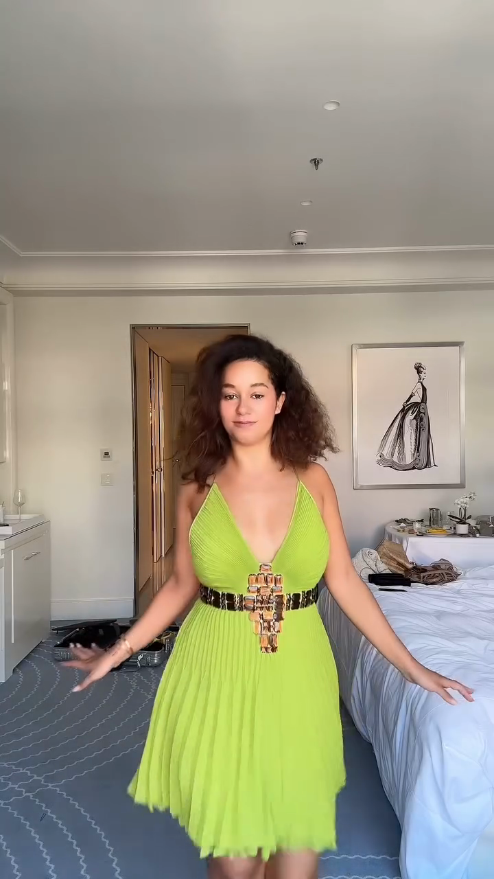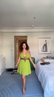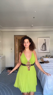 Shine in this Belted Pleated V Neck Mini Dress. The vibrant green pleats, deep V - neckline, and decorative belt create a chic, eye - catching look. Perfect for special occasions, dinner dates, or adding a touch of glamour to your wardrobe. Pair with strappy heels to complete the sophisticated ensemble.