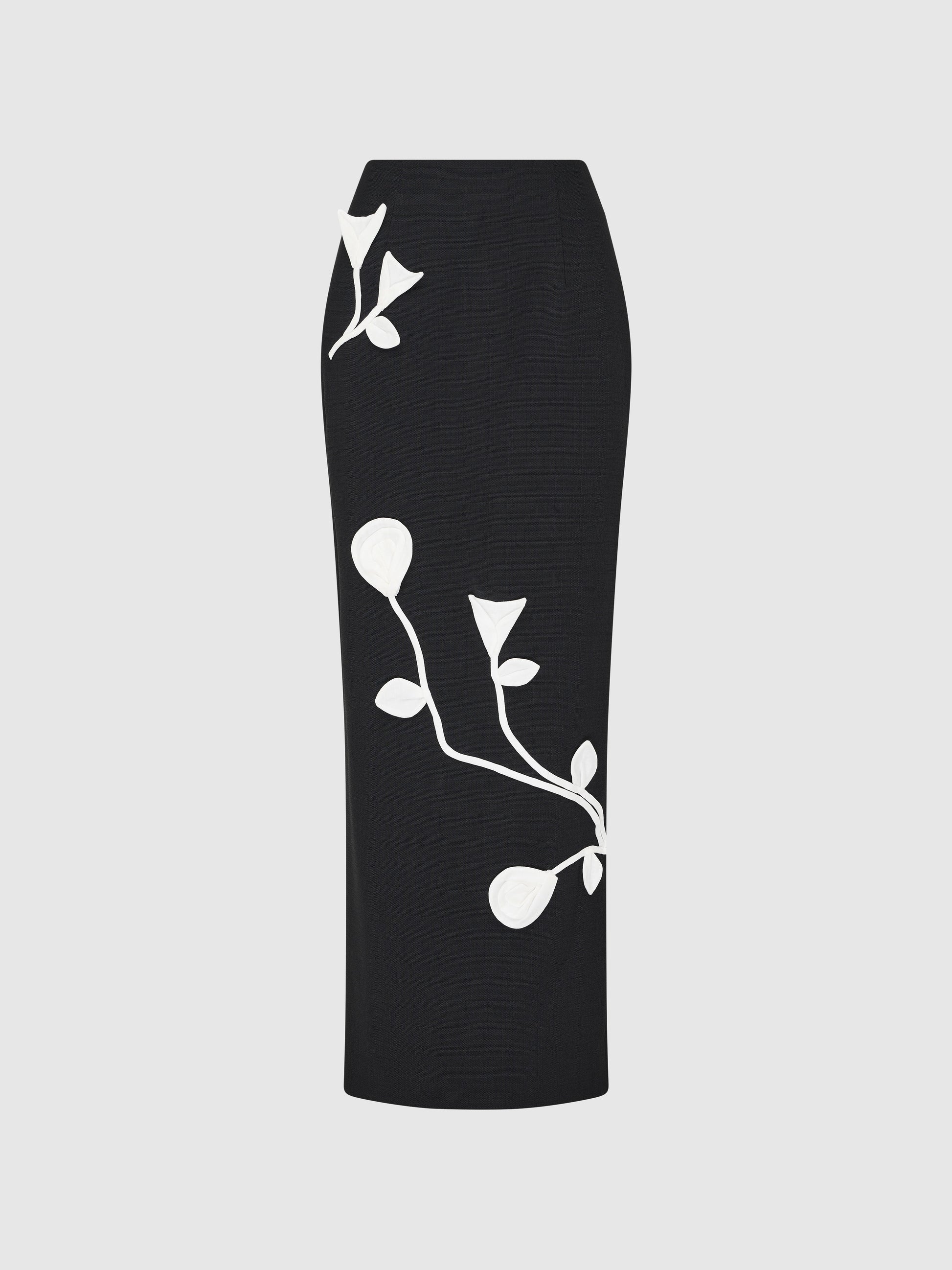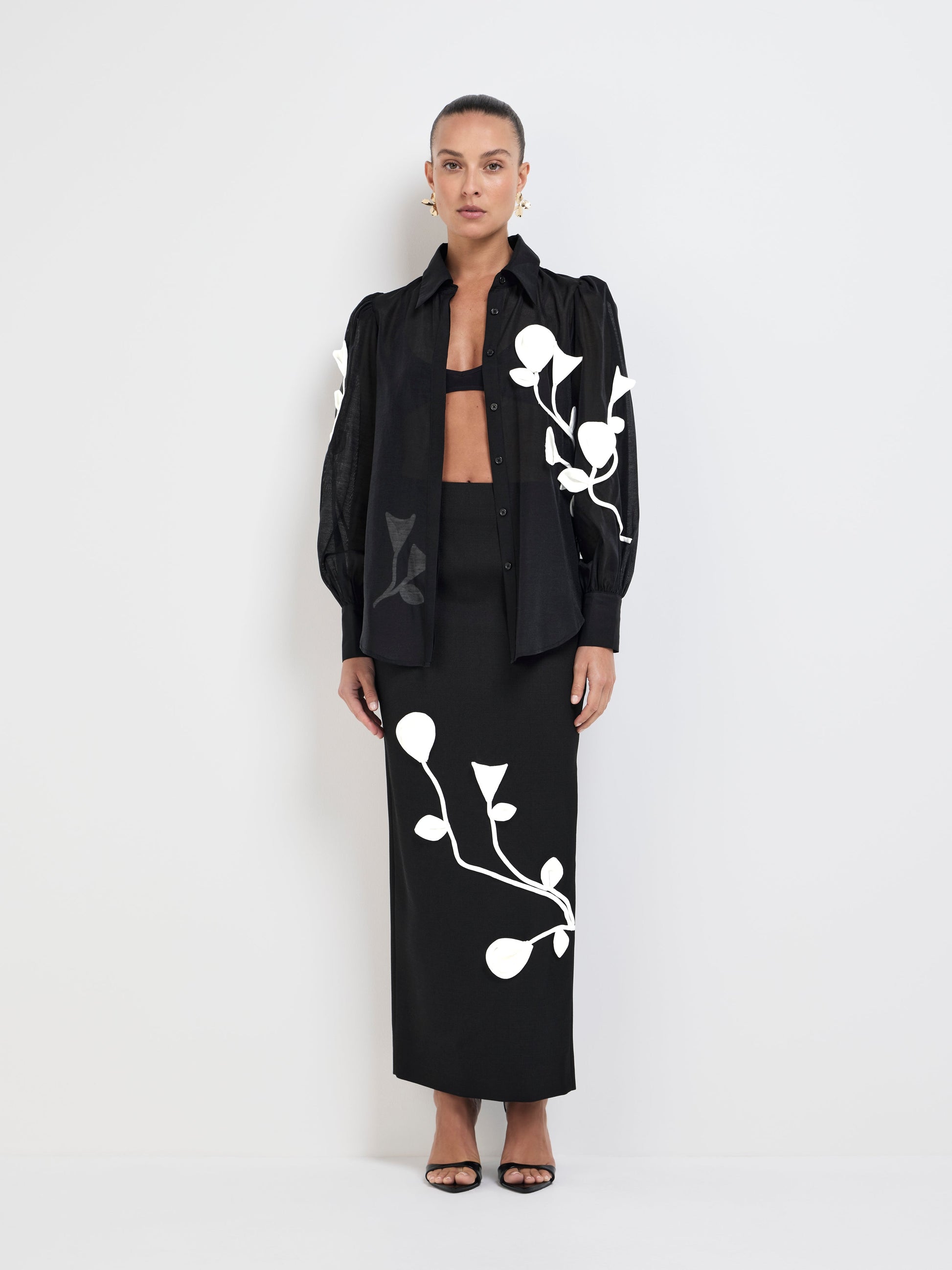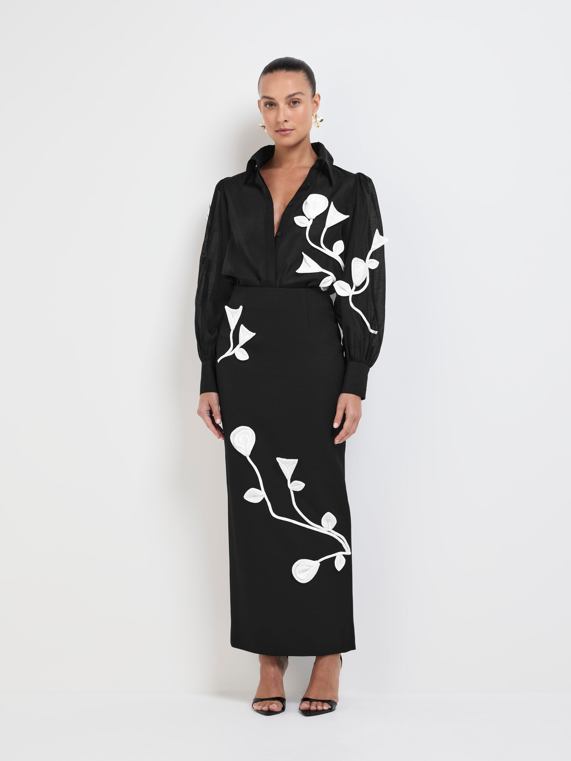 Black and White Floral - Applique Shirt & Maxi Skirt Set