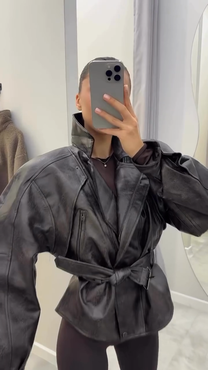 Black Belted Leather Jacket