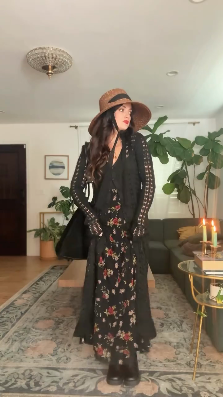 Black Crochet Cardigan and Floral Maxi Skirt Set