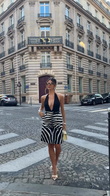 Black Deep - V Halter Top Paired with Zebra - Print Skirt