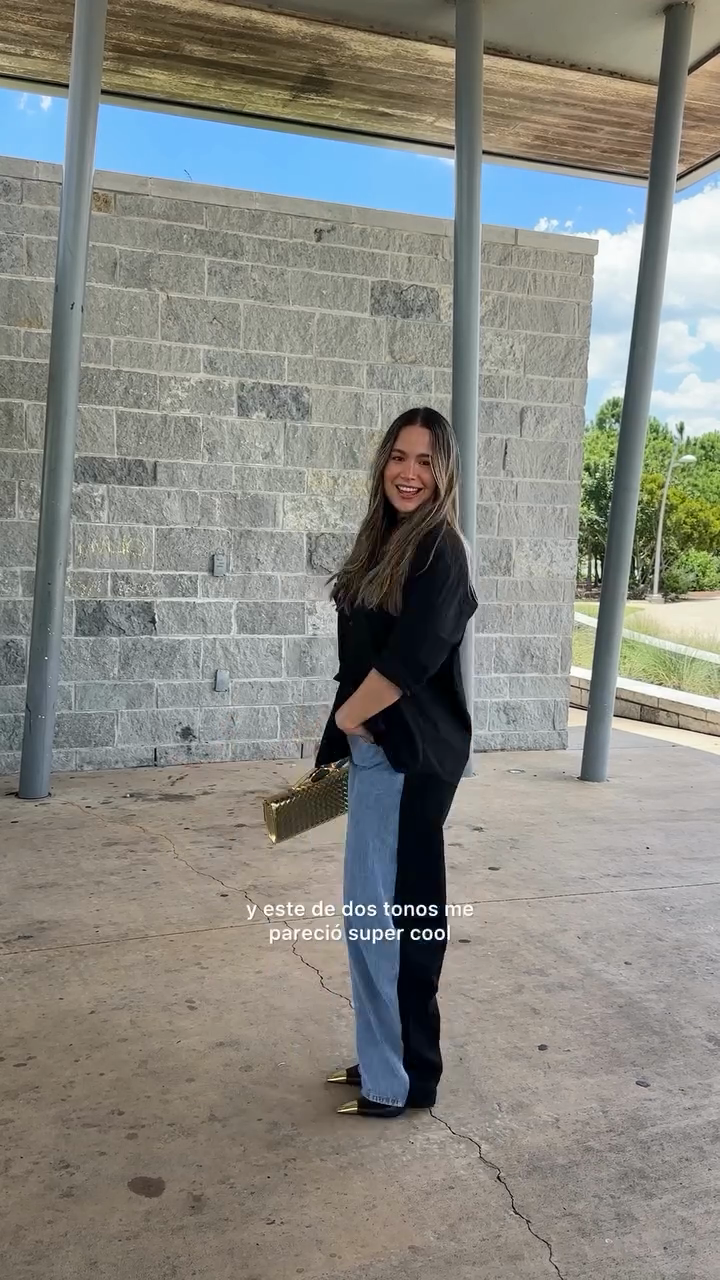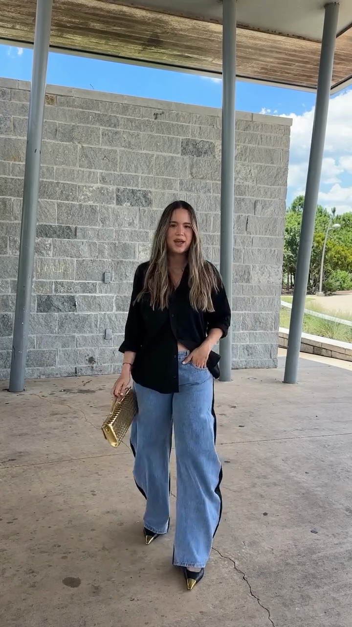 Black Oversized Shirt & Contrast - Trimmed Wide - Leg Jeans Set