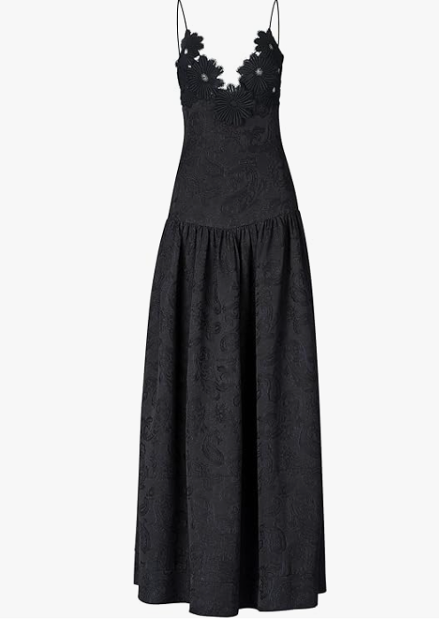 Black Satin Gown with Lace Cut