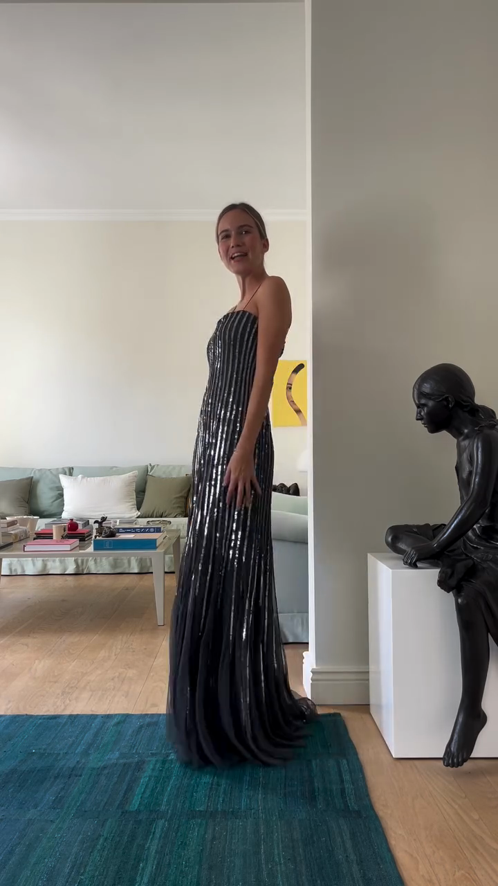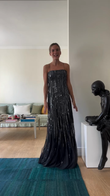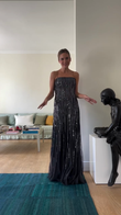 Black Sequined Striped Strappy Maxi Dress
