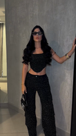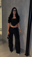 Black sequined two-piece suit