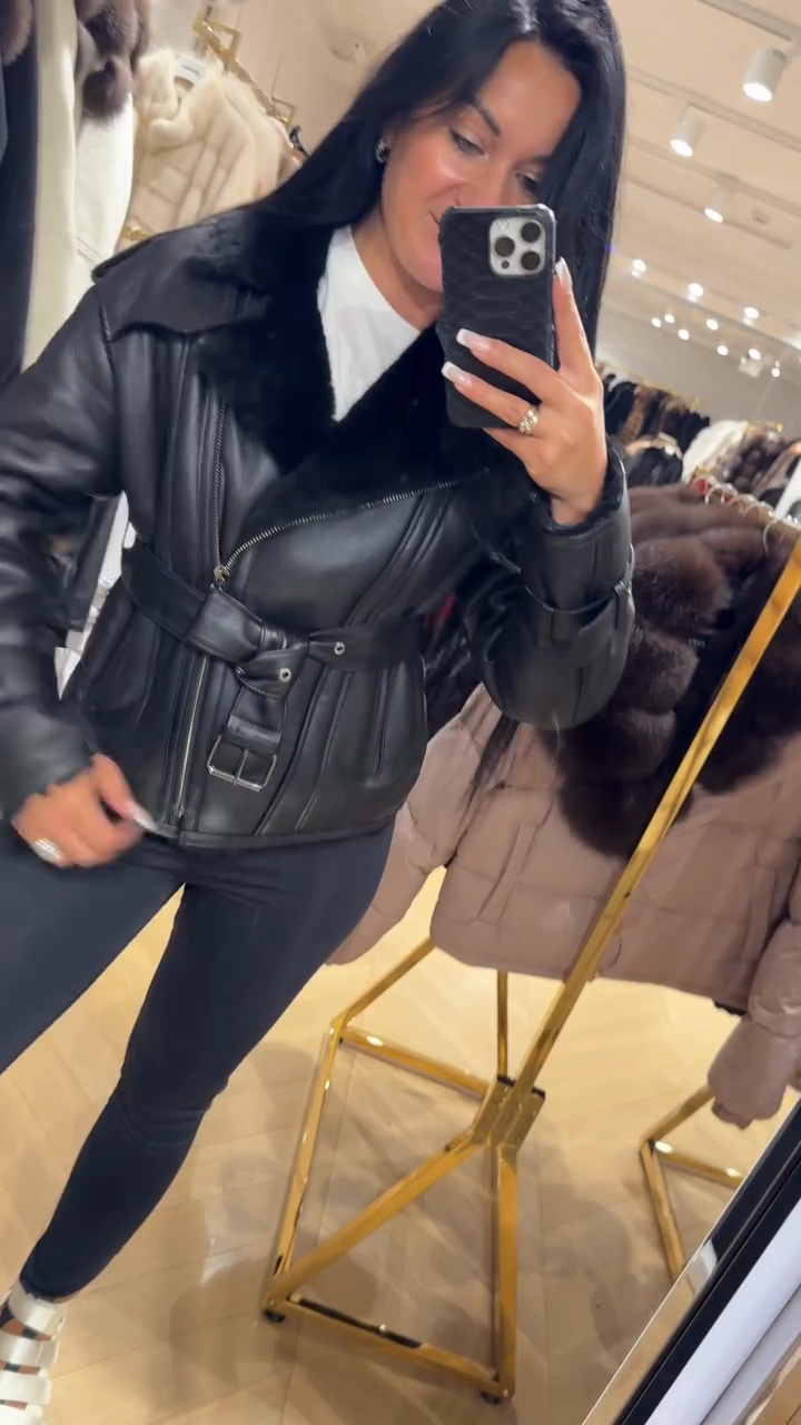 Upgrade your cool - weather style with this Black Shearling - Collar Belted Leather Jacket. The plush shearling collar and waist - cinching belt add luxury and shape, perfect for edgy yet cozy looks. Lightweight build ensures fast page load. Shop now for a timeless, chic outerwear piece!