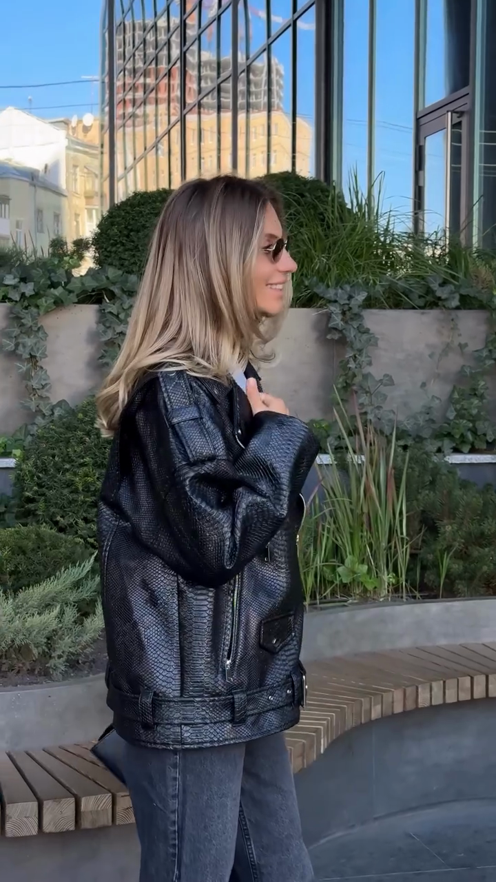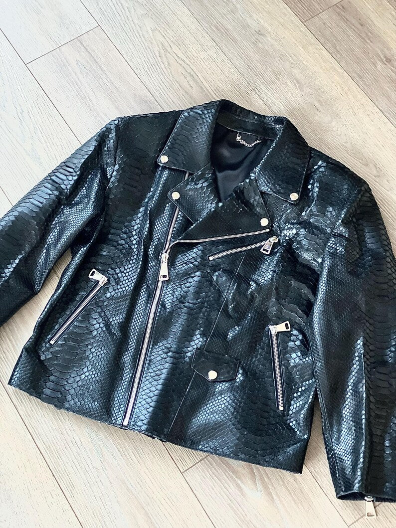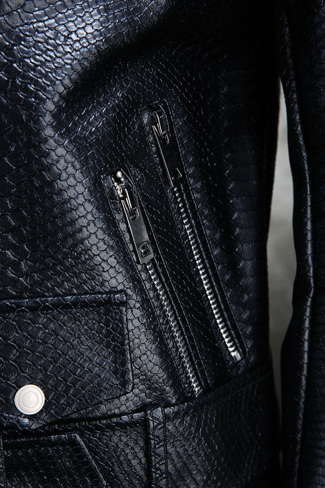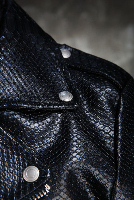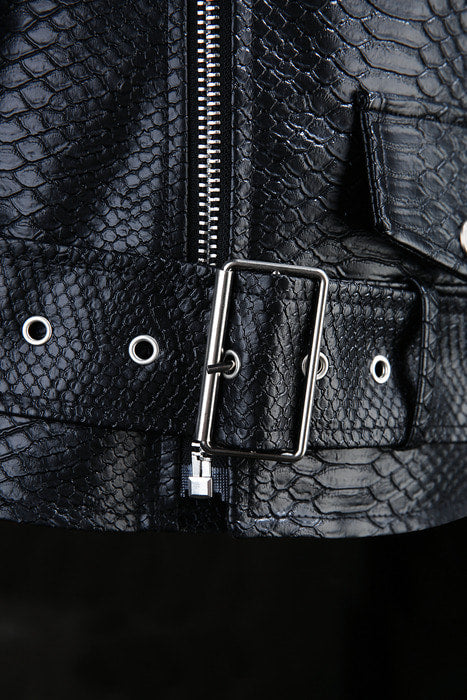 Black Snakeskin - Patterned Moto Jacket