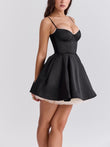 This fairytale creation is the mini version of our 'Mademoiselle' dress. The bodice is boned to perfectly cinch your waist and has a pretty sweetheart neckline with underwired cups. The delicate straps adjust for the perfect fit and 'Minimoiselle' is all about the floaty mini skirt, fitted with voluminous layers of the softest tulle to keep the shape beautifully.