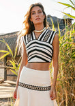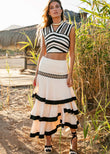 Black - White Striped Crop Top & Tiered Midi Skirt Set