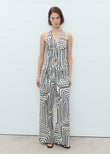 Black - White Striped Halter Top & Wide - Leg Pants Set