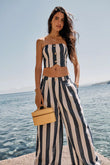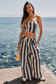 Blue and White Striped Bandeau Top and Wide Leg Pants Set