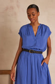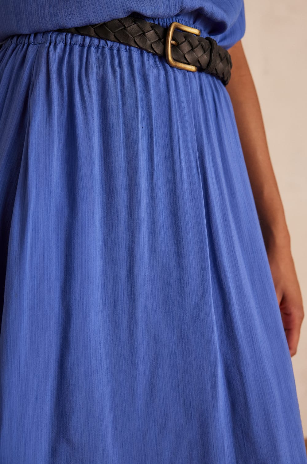 Blue Linen Top and Midi Skirt Set