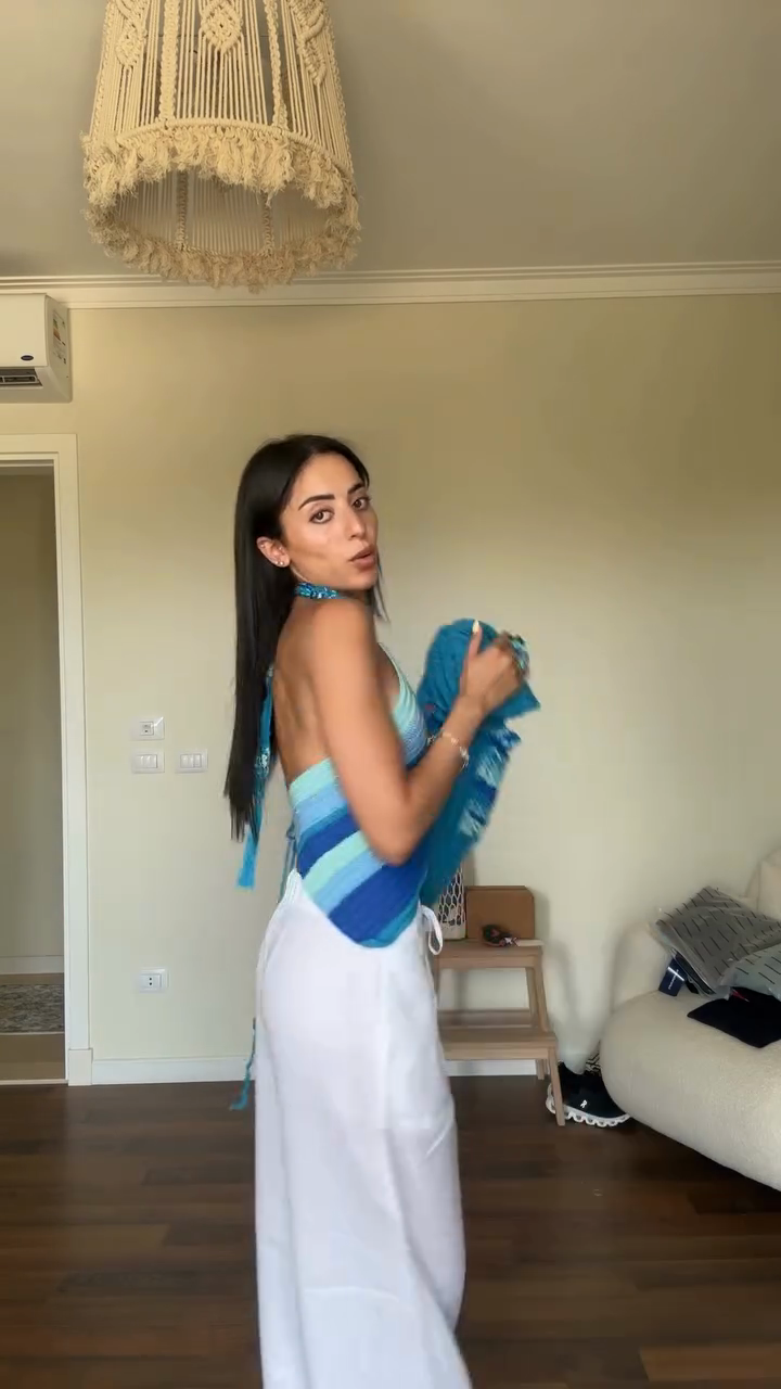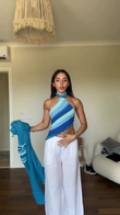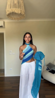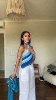 Blue Ombre Crochet Halter Top & White Wide - Leg Pants Set