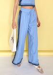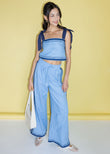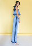 Blue Striped Sleeveless Top and Wide - Leg Pant Set