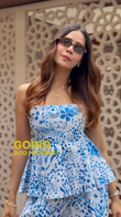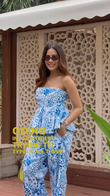 Blue - White Printed Strapless Peplum Top & Flared Pants Set