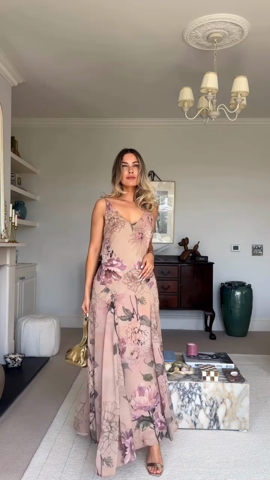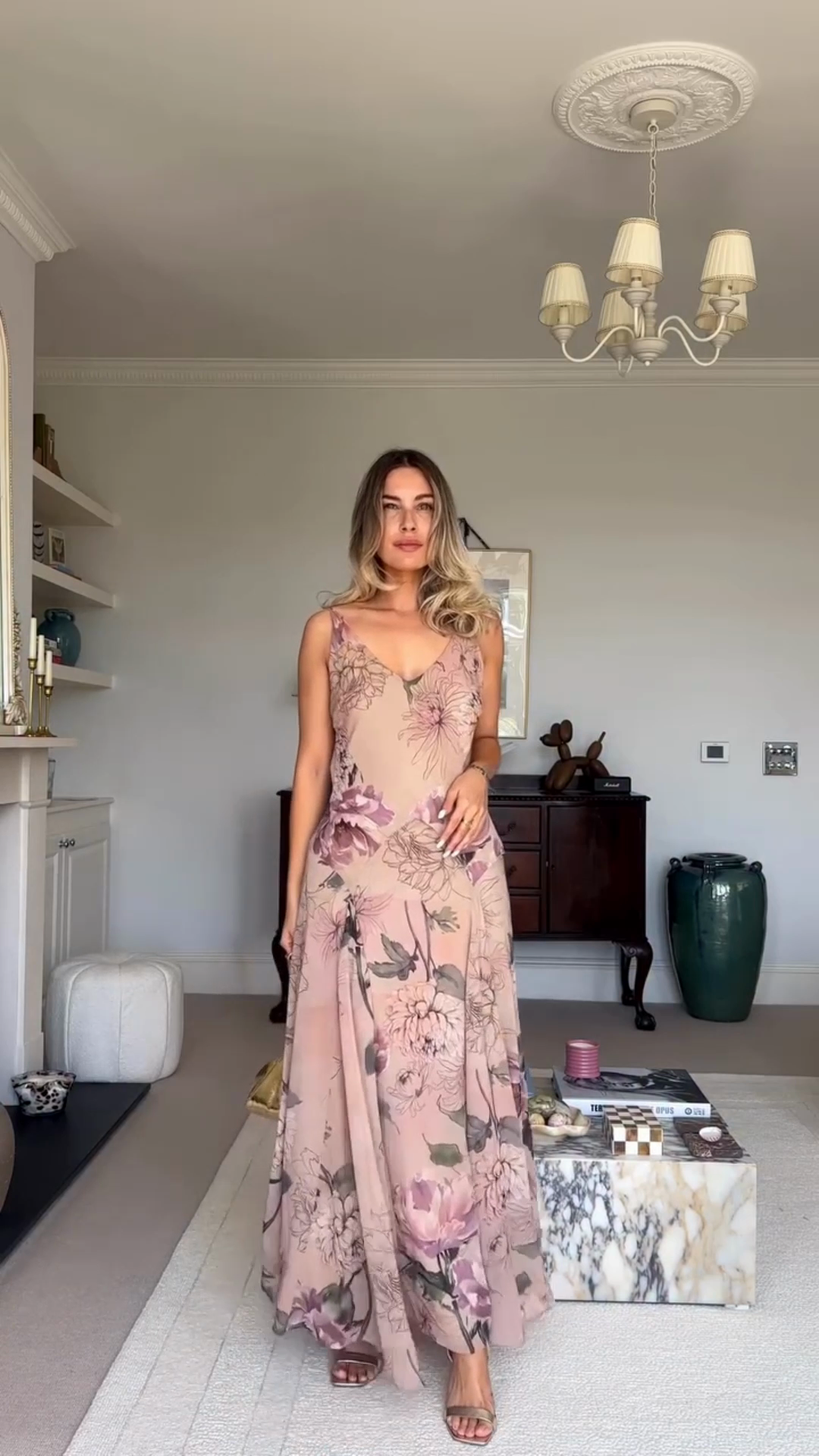 Blush Pink Floral Print Spaghetti - strap Maxi Dress