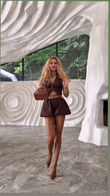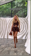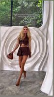 Brown Button - Front Crop Top and Shorts Set