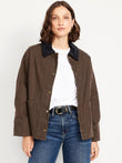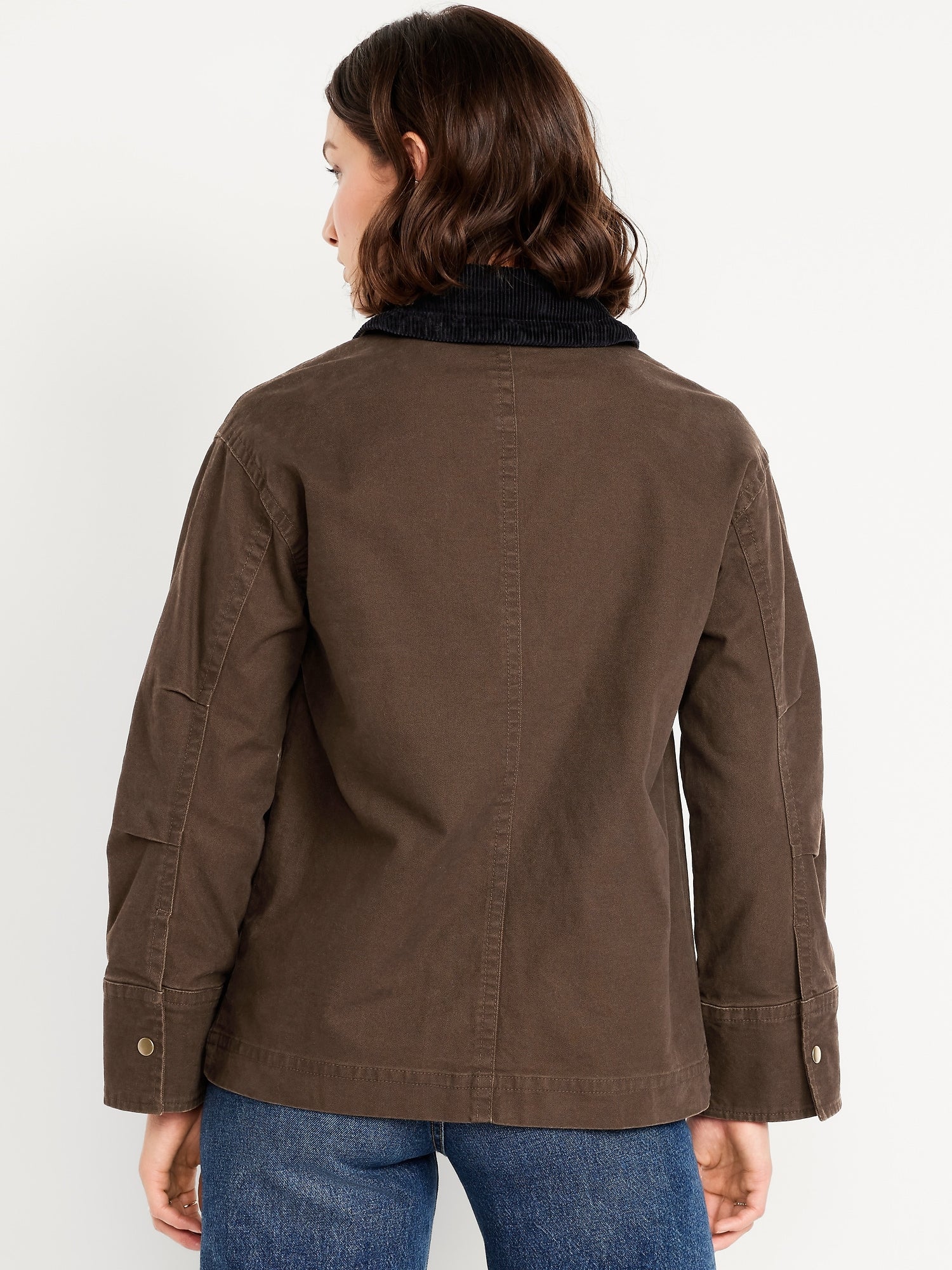Elevate your casual wardrobe with this Brown Corduroy Collar Utility Jacket. The corduroy collar adds a stylish contrast, while the functional pockets and button - front design offer practicality. Perfect for layering over tees or tanks. Lightweight fabric ensures fast page load. Shop now for a versatile, on - trend look!