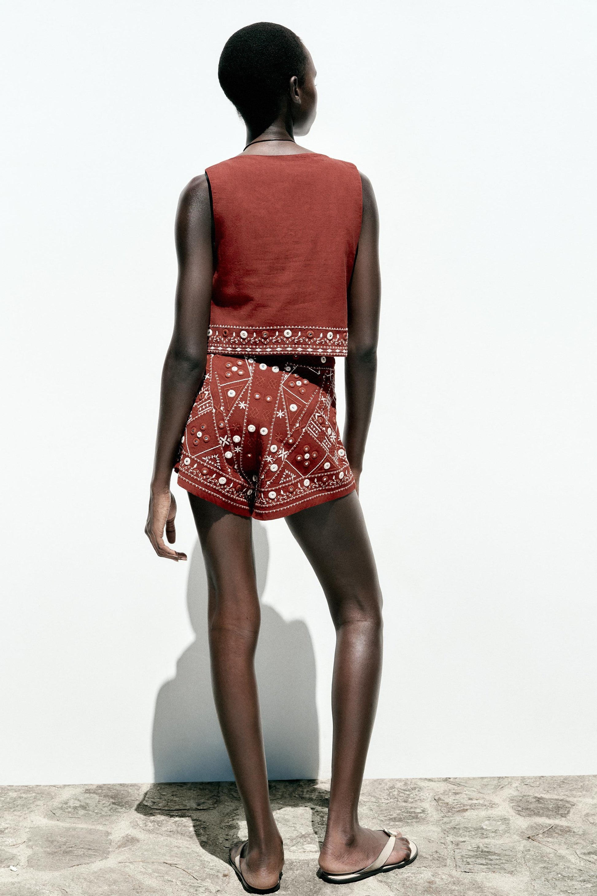 Brown Embroidered Vest + Shorts Set