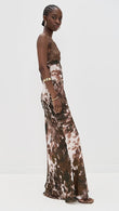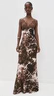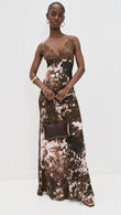 Brown Floral - Print Lace - Trimmed Maxi Dress