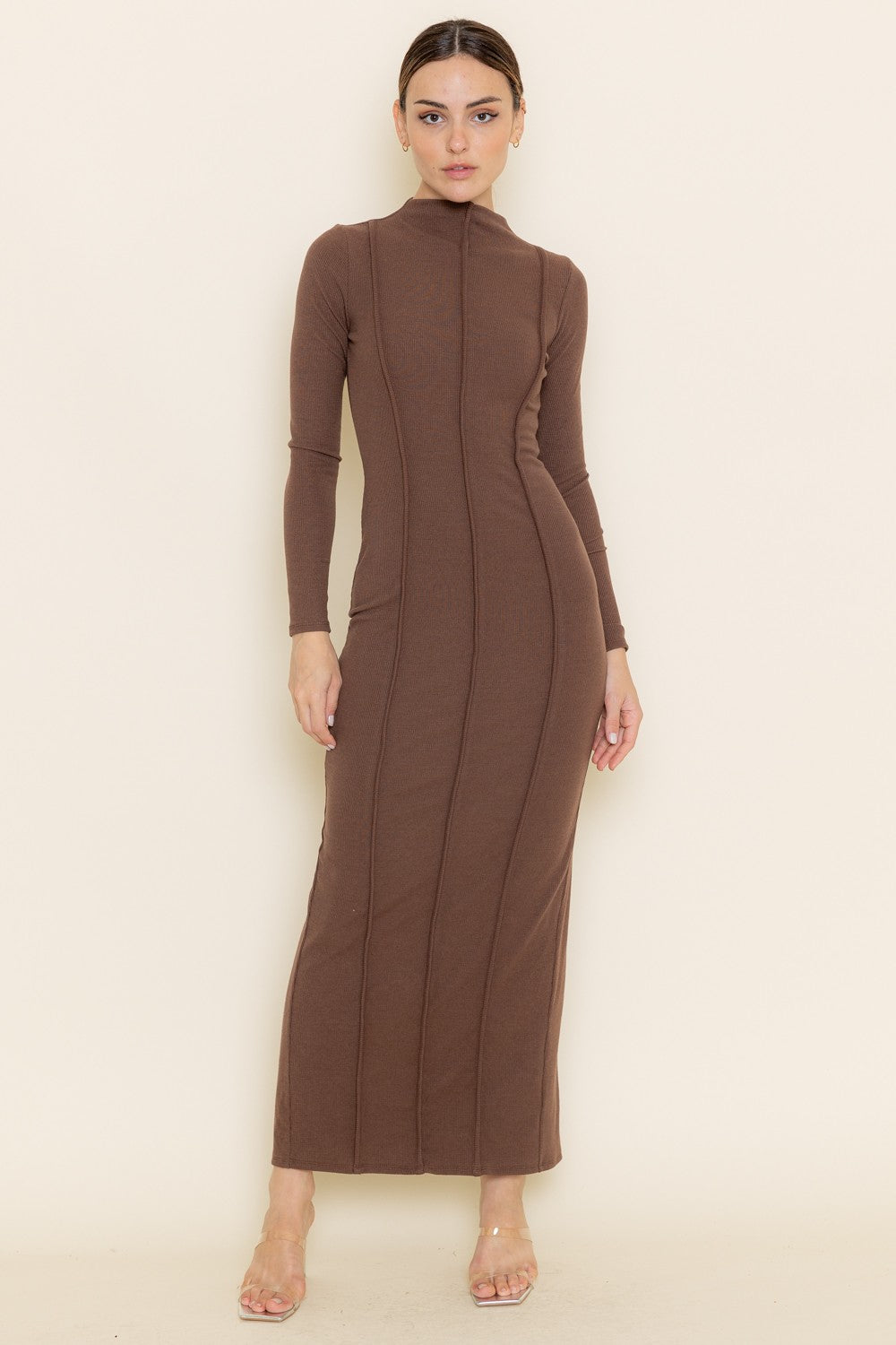 Brown Mock Neck Maxi Dress
