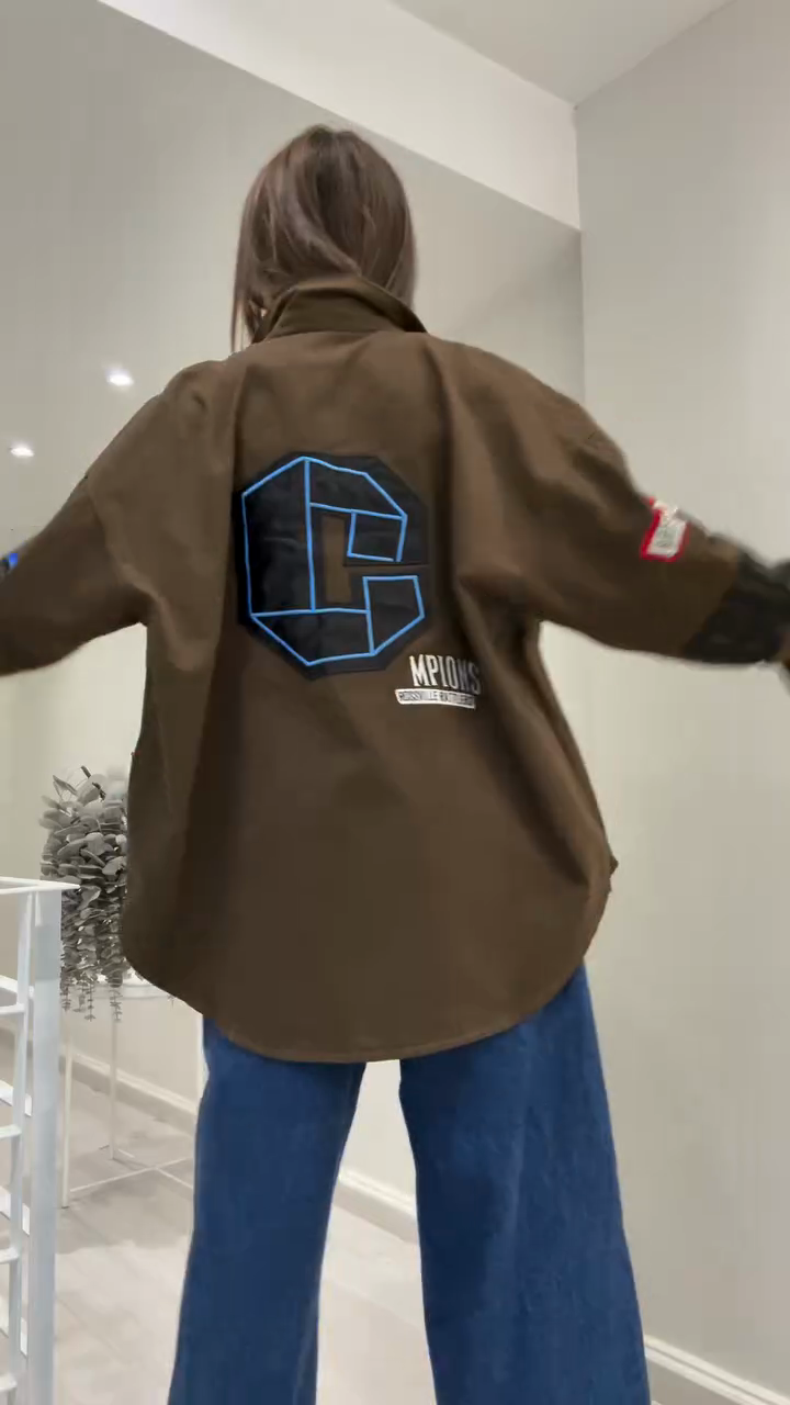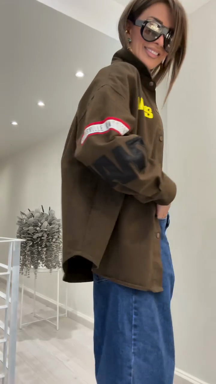 Brown Oversized Patchwork Shirt Jacket