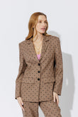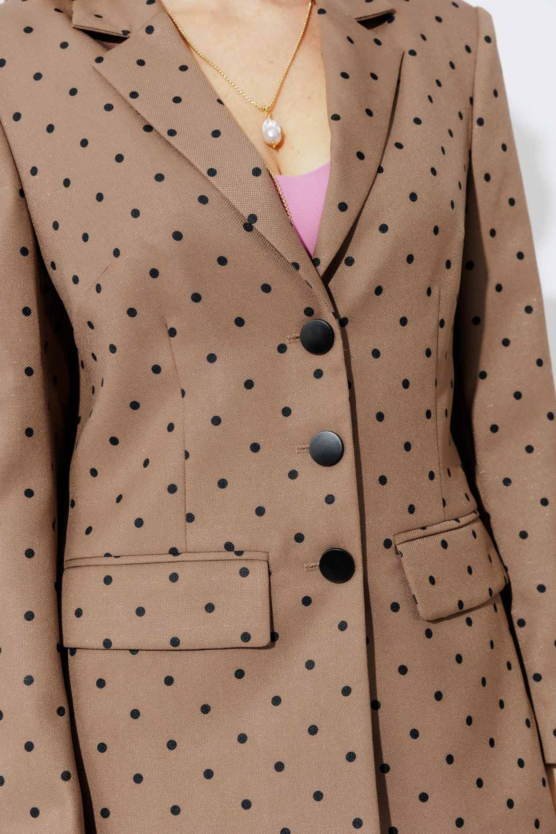 Elevate your office or formal look with this Brown Polka Dot Blazer and Pants Suit Set. The tailored blazer and matching pants offer a polished, stylish silhouette. Pair with a crisp shirt for a complete ensemble. Lightweight design ensures fast page load. Shop now for a chic, professional outfit!