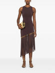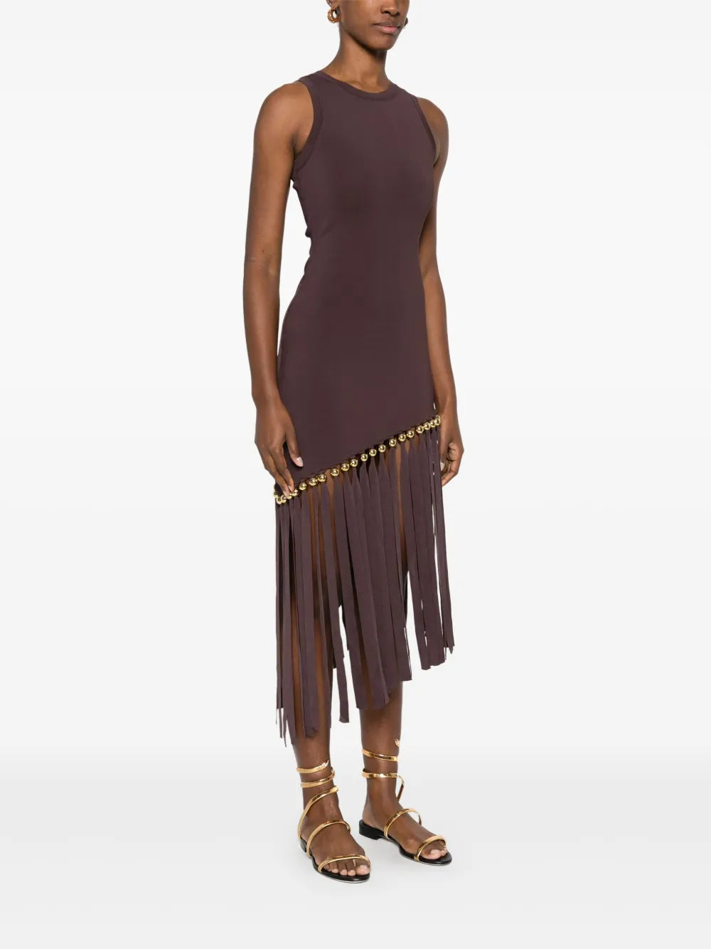 Brown Sleeveless Asymmetric Fringe Midi Dress