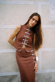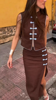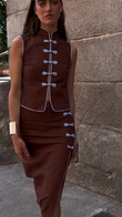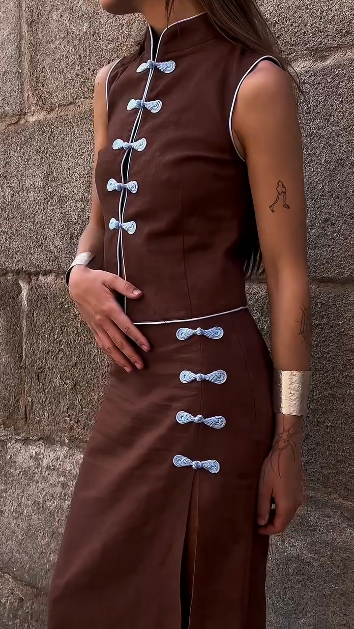 Brown Sleeveless Cheongsam - Inspired Set with Frog Buttons