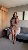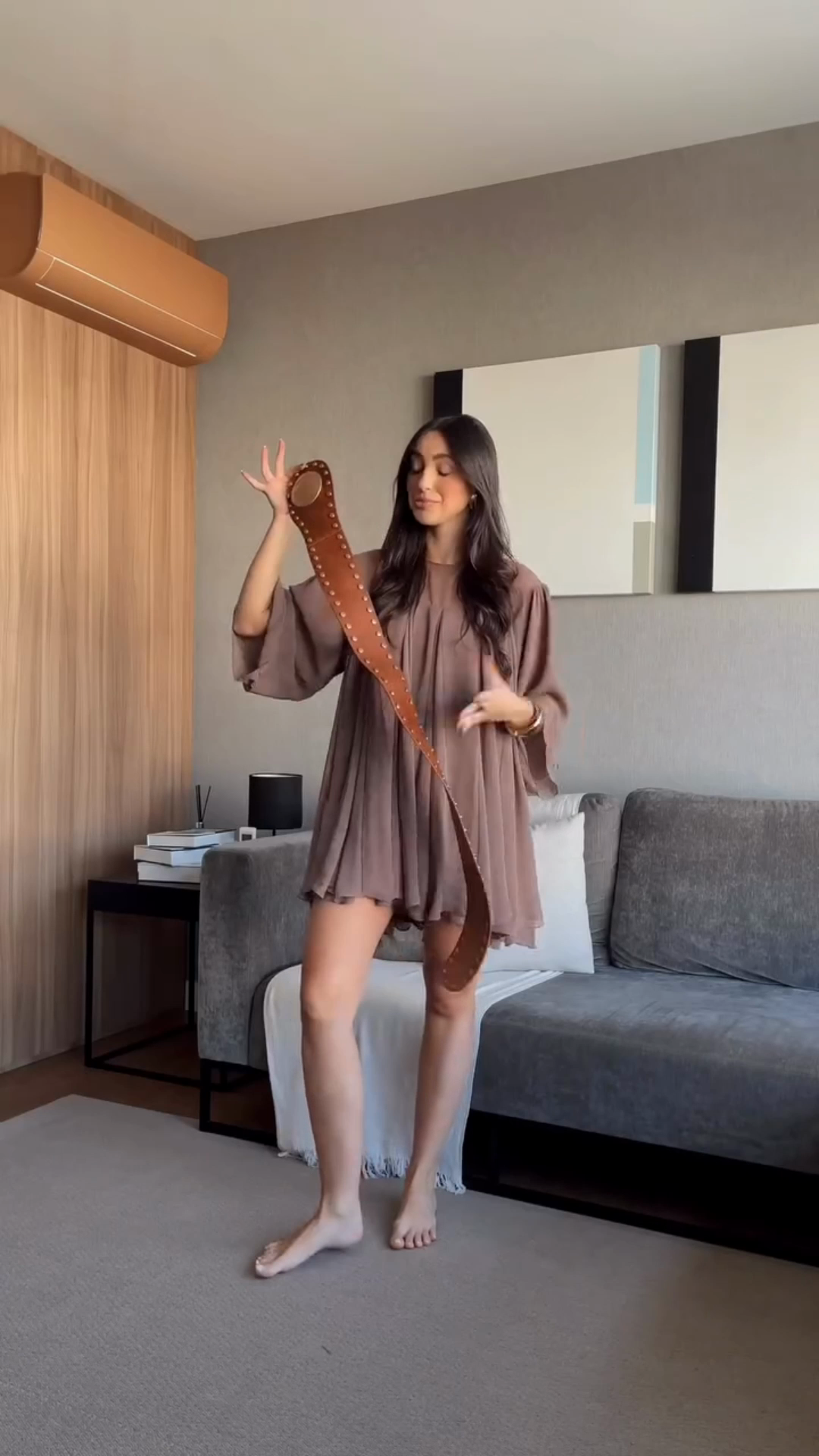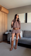 Brown Transparent Trumpet Sleeve Fabric Dress
