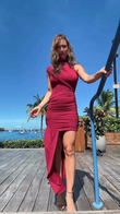 Burgundy One - Shoulder Asymmetric Ruched Dress