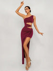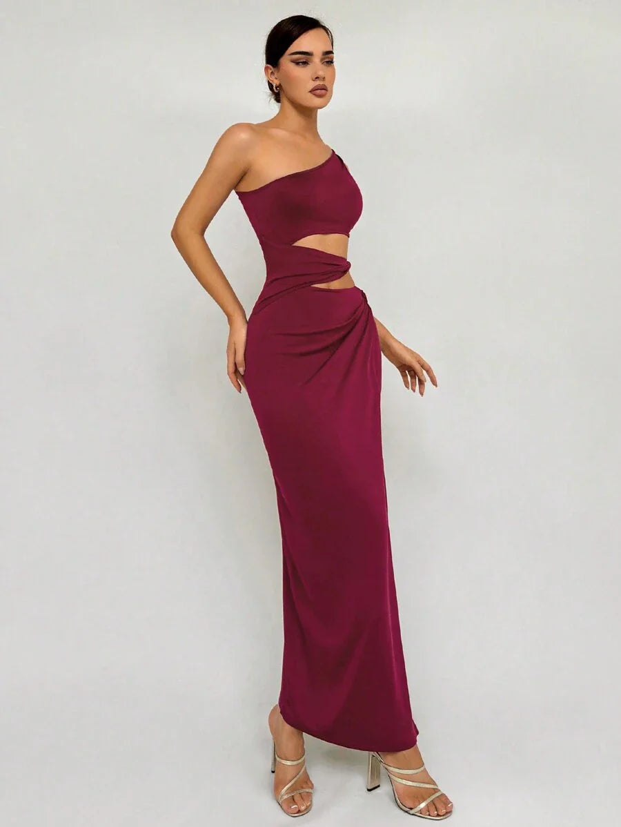 Burgundy One - Shoulder Cut - Out Maxi Dress