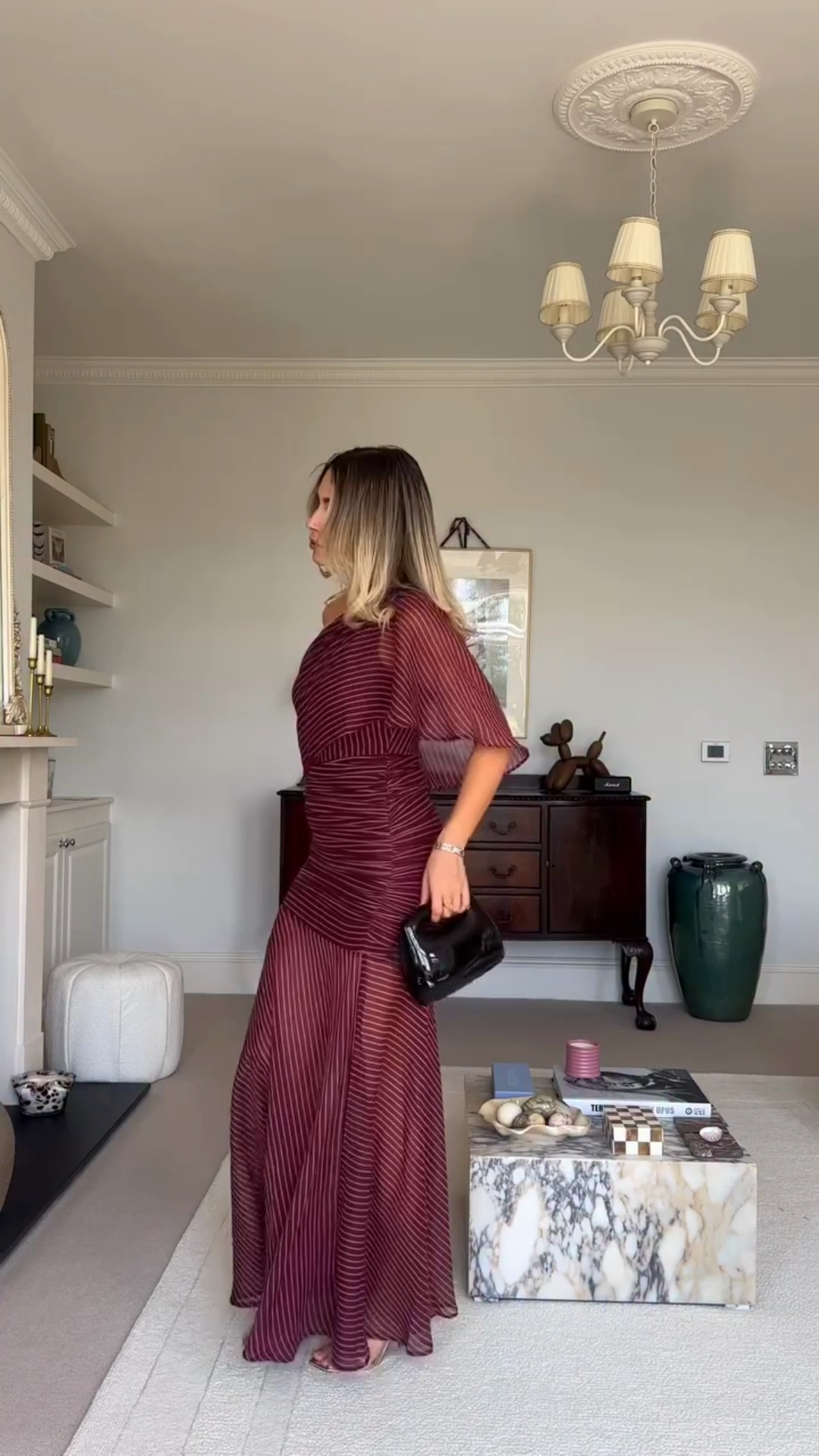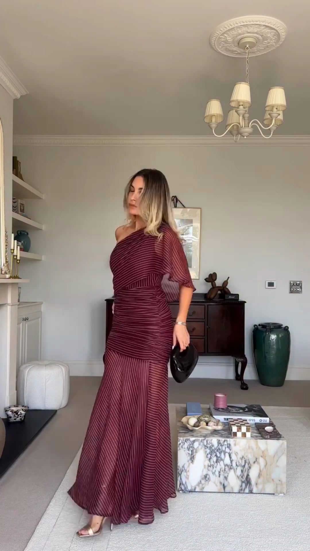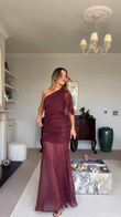 Burgundy Striped One - shoulder Maxi Dress