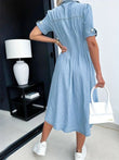 This Collar Buttoned Slim Fit Denim Dress is a must-have for effortless elegance. Designed with a flattering silhouette, it features a classic button-down front and a structured collar, offering a timeless look with a modern twist. The fitted design enhances your figure, creating a slimming effect, while the soft denim fabric provides comfort and flexibility.