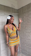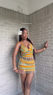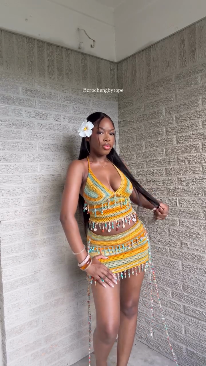 Colorful Crochet Halter Top and Mini Skirt Set