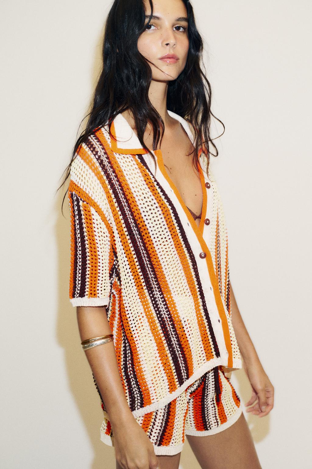 Colorful Striped Crochet Short Set