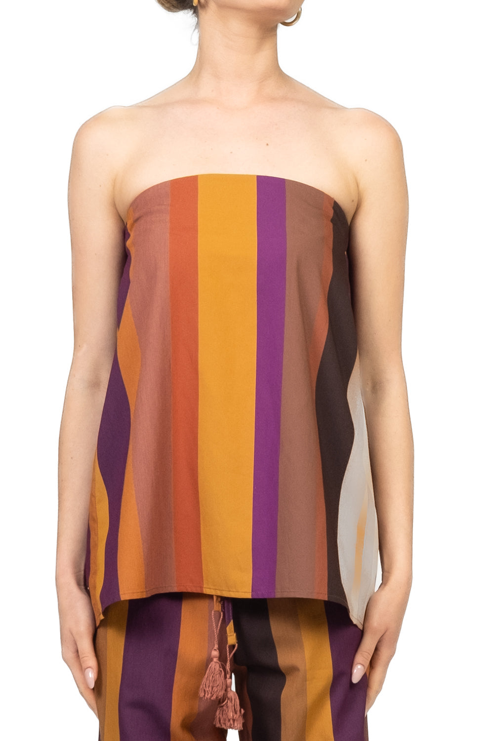 Colorful striped off-the-shoulder top and wide-leg pants set